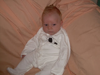 He does swallow some food, but probably more gets spit out still. It is awesome watching him learn to use his tongue to move the food around in his mouth. He is really quite good at moving the food to the front of his mouth to spit it out, but I don't know if the skill of moving it backward is developing a bit more slowly! It doesn't matter, really, though. He is just learning about different tastes and textures at the moment, and anything he actually swallows is a bonus. I certainly haven't noticed any decrease in the amount of milk he drinks yet (or, more accurately, in the number of times a day he requests nursing).